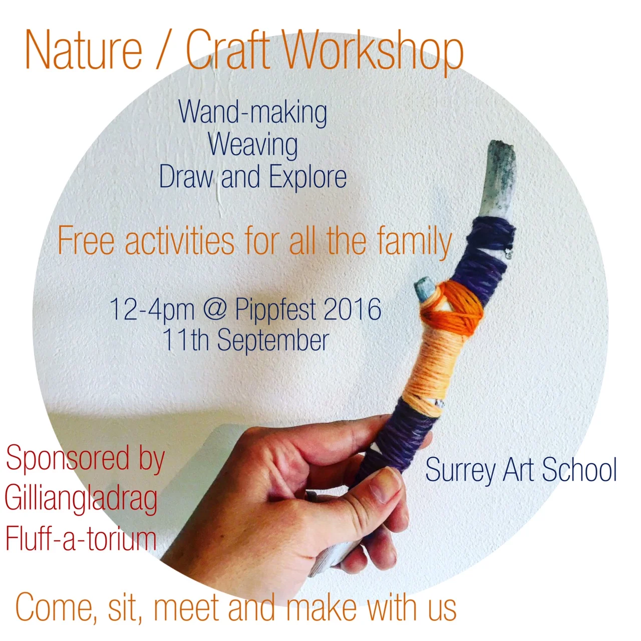 Surrey Art Schoolhouse will be running Gratis Nature / Craft workshops for all the family at Pippfest 2016! Join us on the 11th September in Dorking for a free community festival to raise money to keep Pippbrook House in public hands.